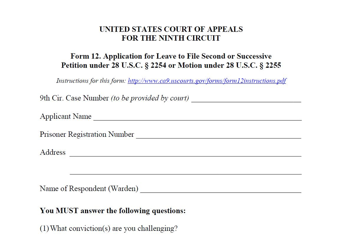 Form 12. Application for Leave to File Second or Successive Petition under 28 U.S.C. § 2254 or Motion under 28 U.S.C. § 2255