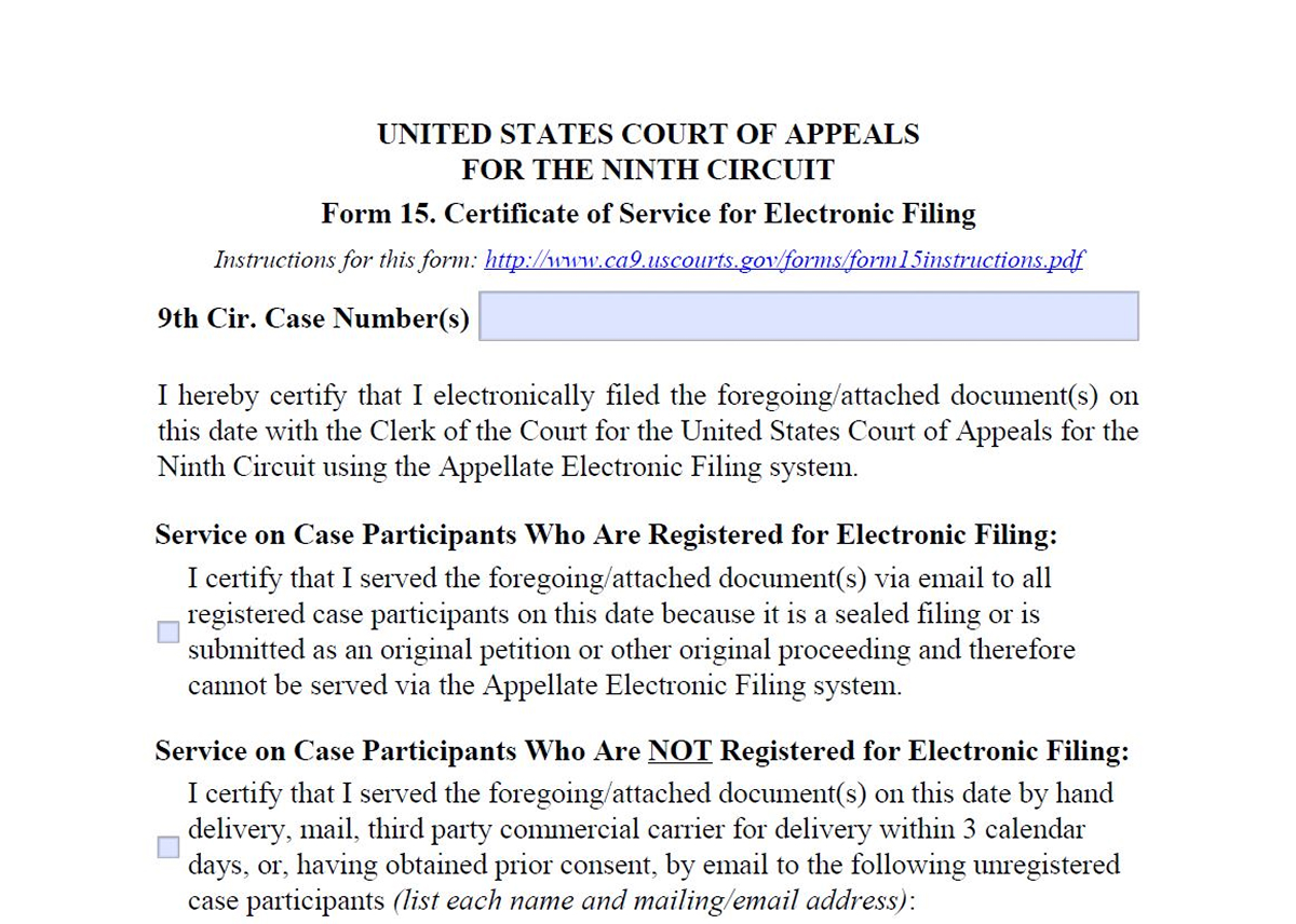 Form 15. Certificate of Service for Electronic Filing