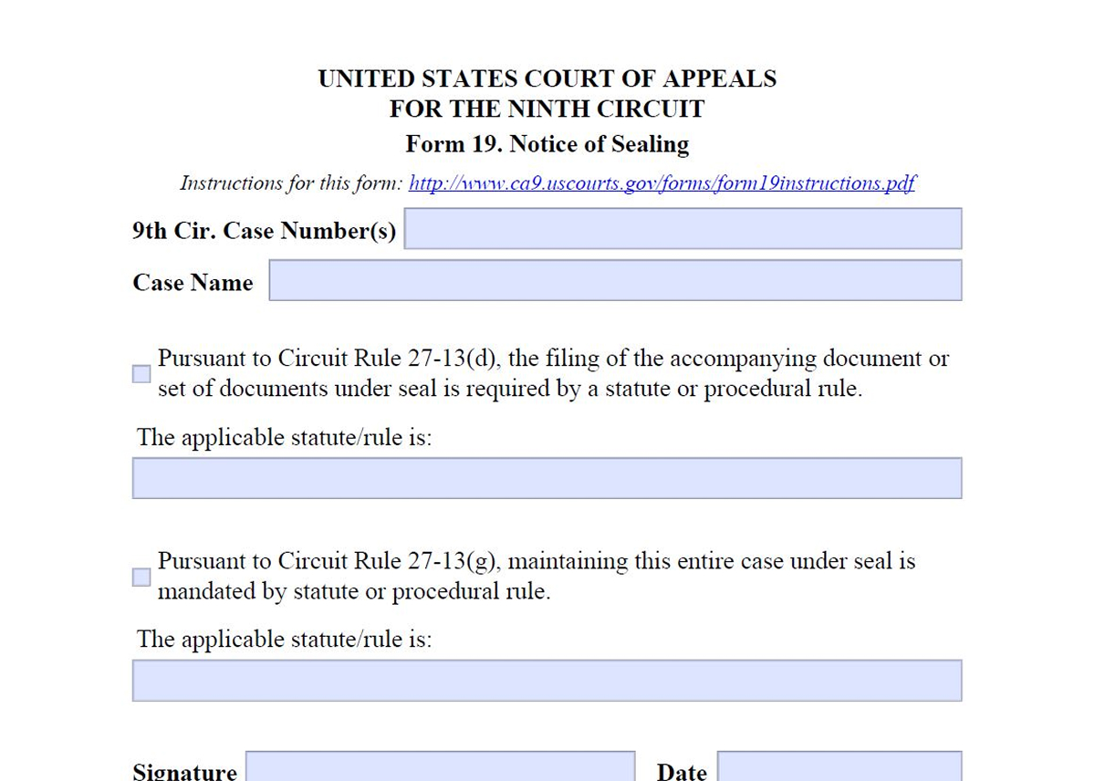 Use Form 19 if sealing a document or case is required by a statute or procedural rule.