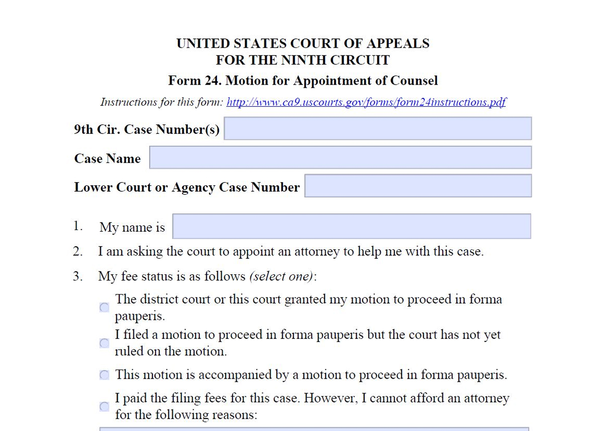 Form 24. Motion for Appointment of Counsel