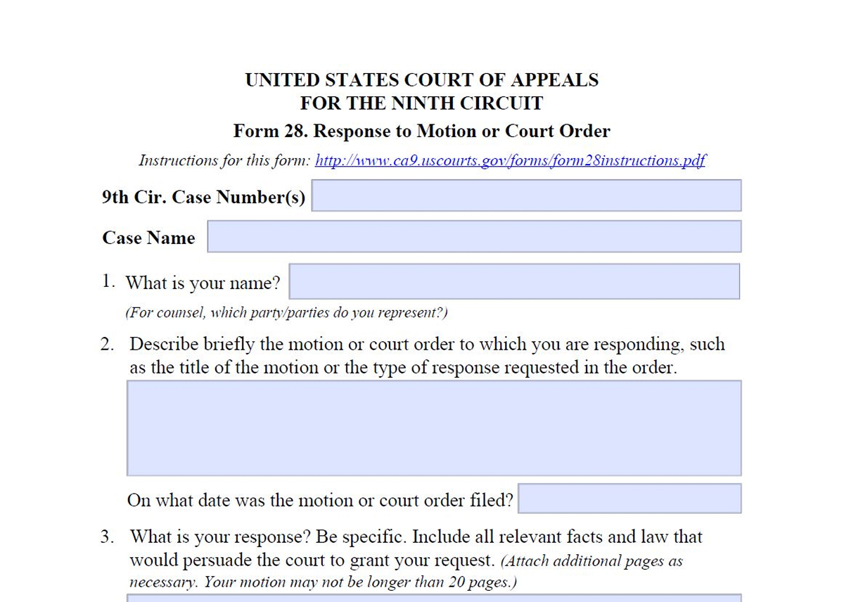 Form 28. Response to Motion or Court Order