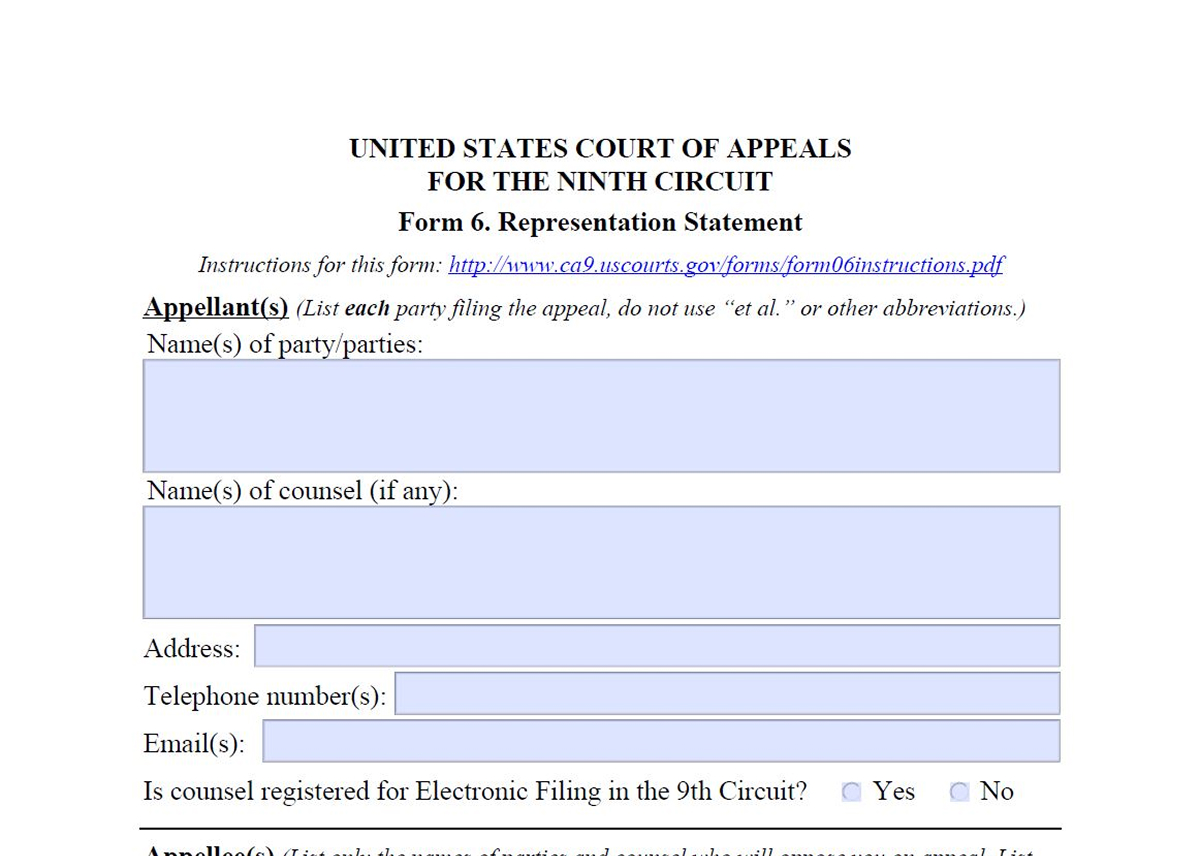 Use Form 6 to notify the Court who the parties and attorneys are for an appeal at the same time you file your notice of appeal.