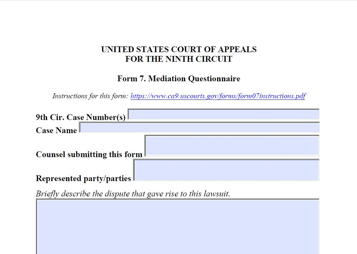Attorneys: use Form 7 to inform the Court's about an appeal's mediation possibilities.