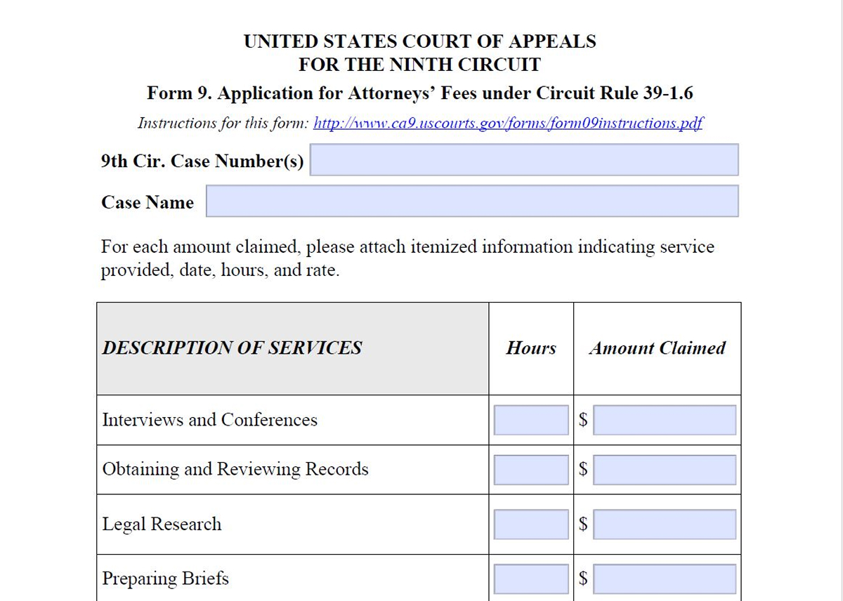 Form 9. Application for Attorneys' Fees